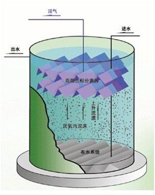 UASB反應器的上部設置氣、固、液三相分離器,下部為污泥懸浮層區和污泥床區。